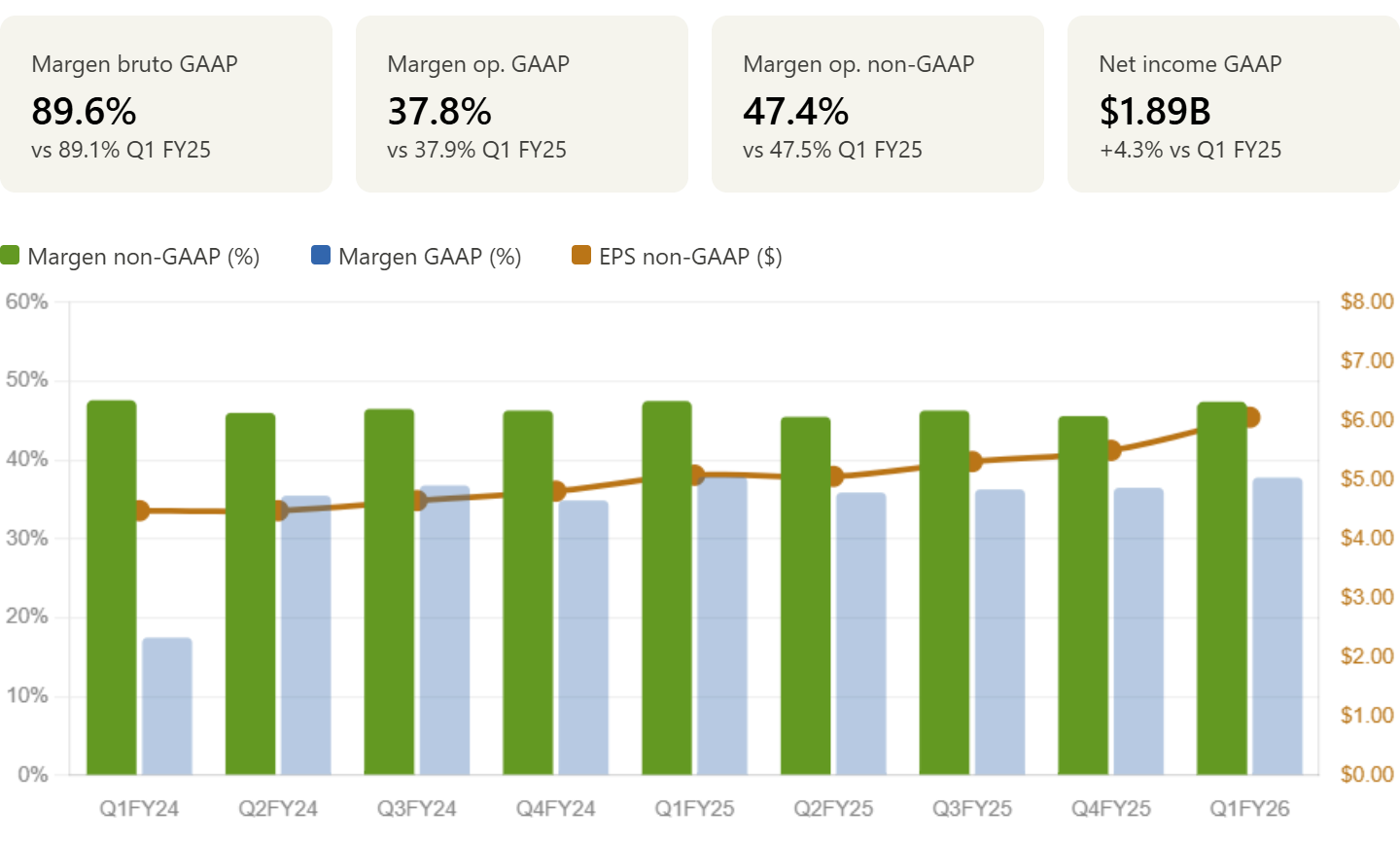 Mantener un margen operativo non-GAAP del 47.4% mientras se invierte agresivamente en IA es uno de los logros de este trimestre.